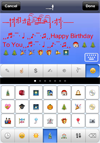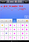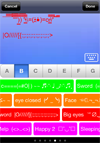 2.Tap the "Keyboard" button to switch among the normal keyboard, the symbols+emoji keyboard and the text picture keyboard."